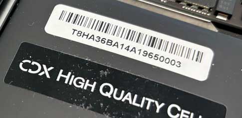 Das Produktionsdatum der neueren Batterien lässt sich aus dem Herstellercode auf dem Aufkleber auslesen. Am Beispiel einer Retina HQ Batterie mit dem Code 6TYC1HK18A14930015 lösen wir Ihn auf.